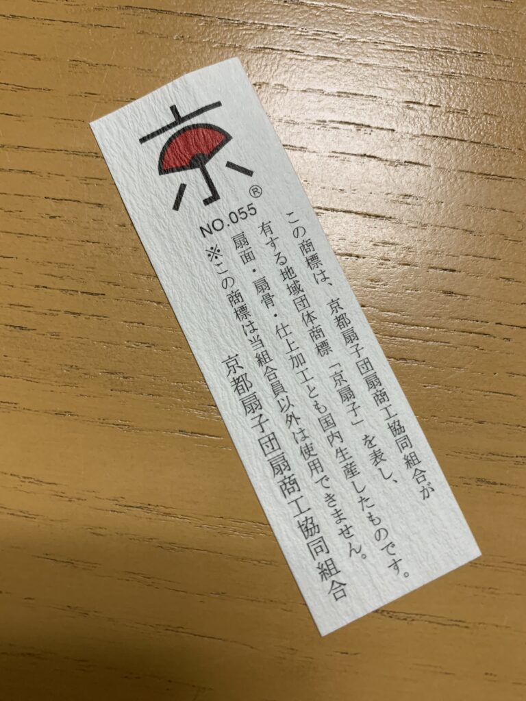 1.京扇子というロゴがある物は扇子として信頼できる品質を有している。