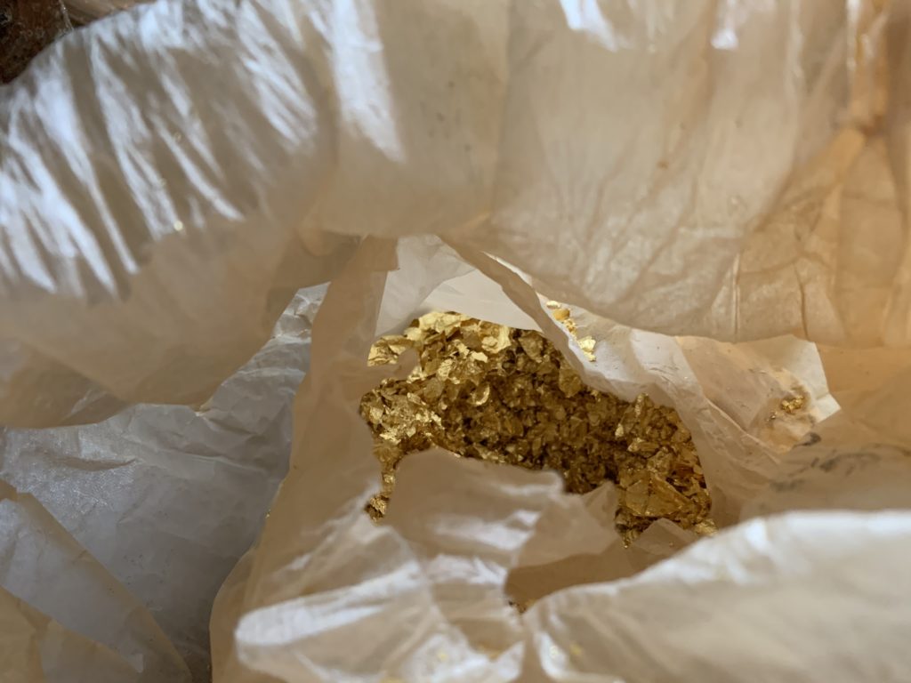 扇子に使う箔の種類はいくつか種類がありますが、今回は本金箔の砂子を使います。