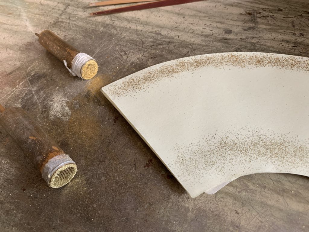 これらを網を張った筒に入れ、砂子にすることで、扇子の柄となります。