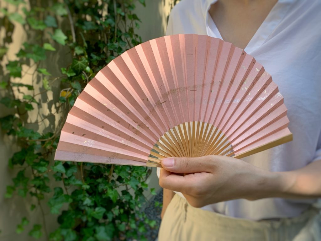 大西京扇堂で発売されている枯淡シリーズは、枯淡という言葉は、あっさりとしていながら味わい深さを感じることや、欲気がないといった意味で、それを箔を使って可視化を試みたものです。
