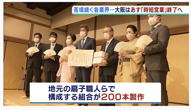 また活用の場と致しまして花街の芸、舞妓さんに使って頂くことにより日本独自の感染対策として発信して行く方針で、京都の5花街に200本の扇子を寄付させて頂き積極的に使って頂く事になりました。