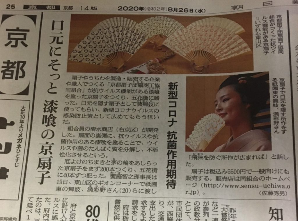 飛沫感染対策に扇子の持つ文化を乗せ、それに合わせた抗菌の商品をリリースし、主に花街での使用モデルを提案した動きでしたが、これを沢山のメディアに取り扱ってもらい、拡散して頂く事ができました。