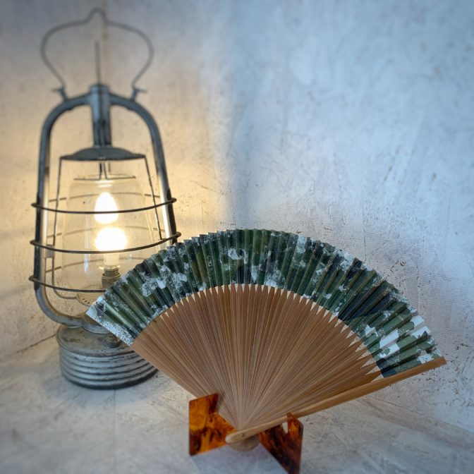 箔の彩りを全面に出した素材の魅力が特徴で扇面の面積が広いと普段使いにはくどくなって飾りや舞の扇子になってしまうのですが、扇骨部分の面積が多いため箔の存在感がちょうど良く上品に仕上がっています。