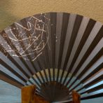 黒の下地に銀で扇面加工を施し、黒骨を合わせる事で統一感のあるモダンな仕上がりになりました。