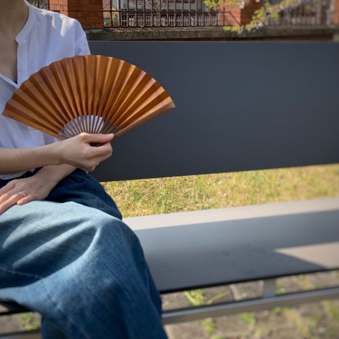 また、無機質な一面を持つ金属、銀の有機的な部分を表現に取り入れることと、扇骨を焼煤加工することにより骨と扇面の親和性も高くなっています。